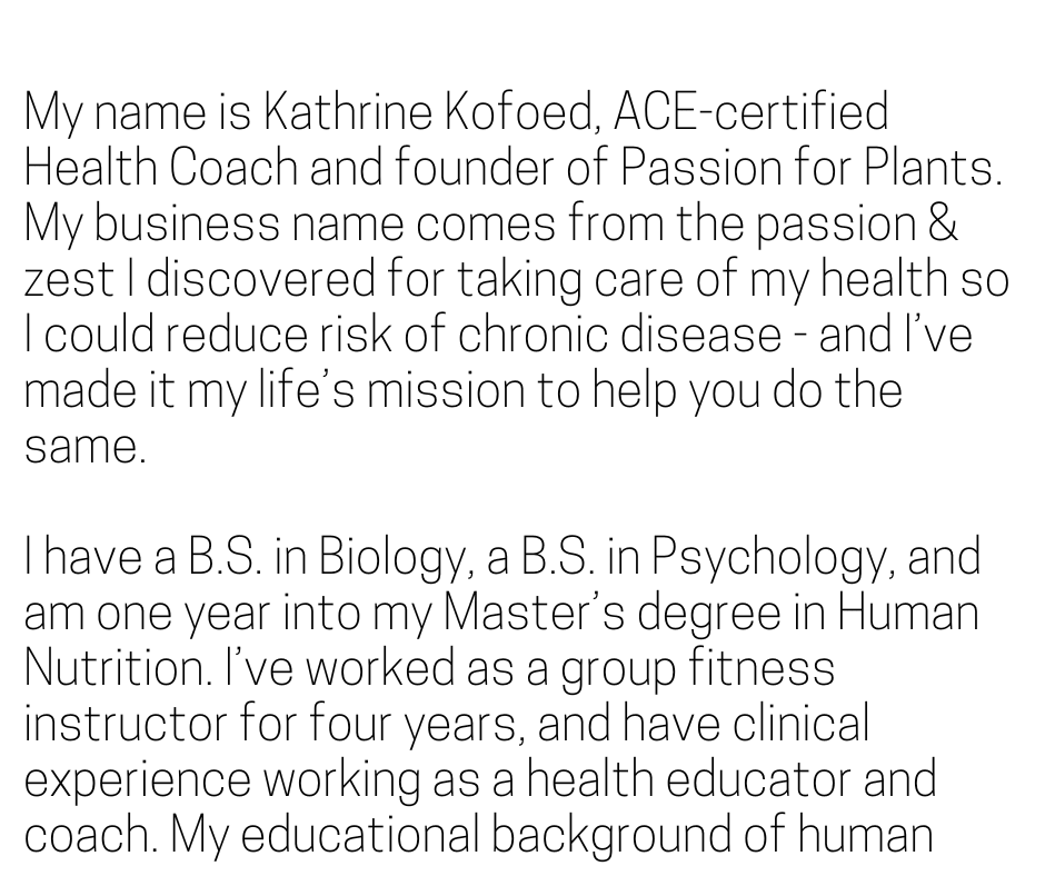 "Having a professional’s opinion is an investment and given the amount of time I had spent on managing my relationship with food, my time together with Kathrine was worth its weight in gold.”